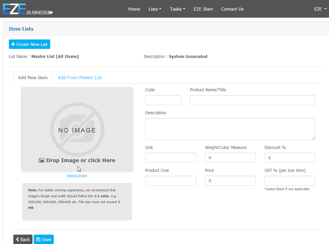 To ADD ITEMS in Bulk, use the IMPORT button and this screen will open.