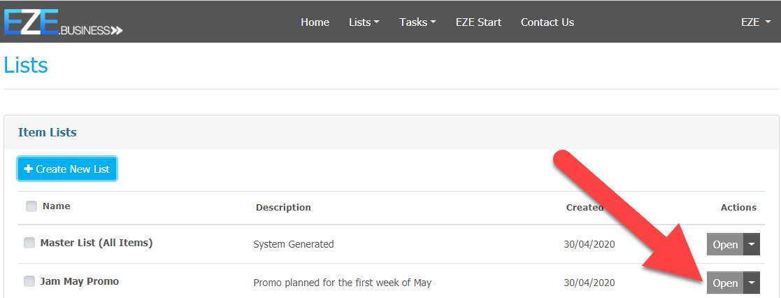 4. To import the completed list of items from the spreadsheet press the IMPORT button.