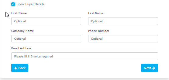 Alternatively, if you want to record the customer names and details tick the "Show Buyer Details" box and the screen will extend to allow the customer to enter their own details.