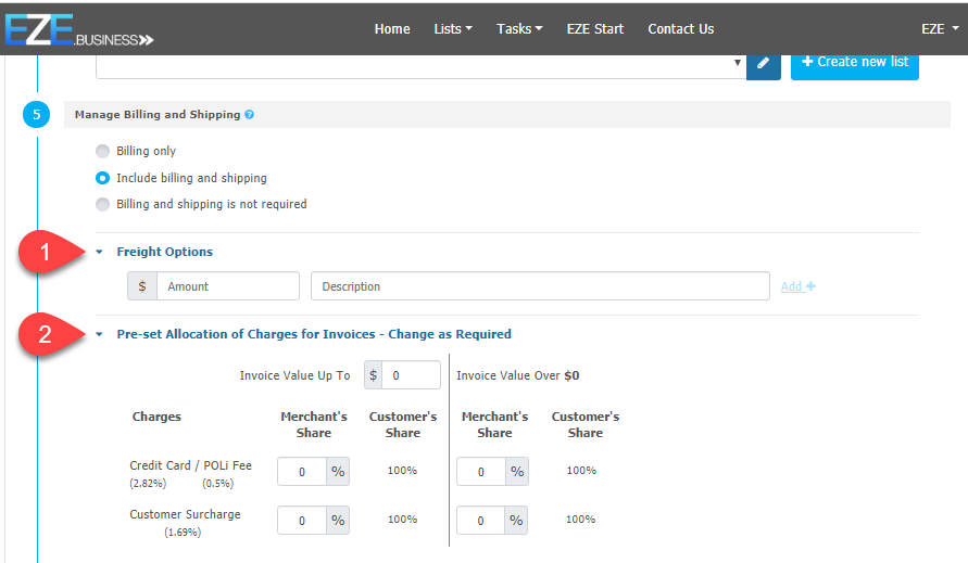 The default allocations should have been set up under the Entity Details section at registration time if fully completed. If the default settings do not appear, look for the down arrow at the top of the Home Page.