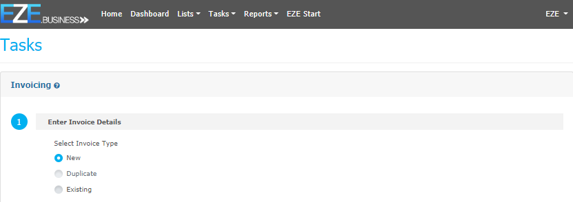 When opened there are three different types of invoice transactions you can perform in EZEinvoice: