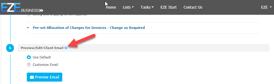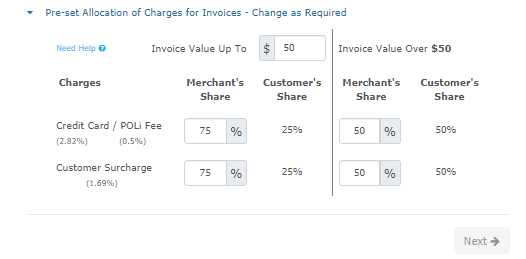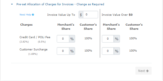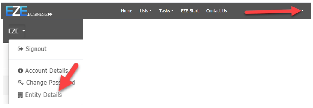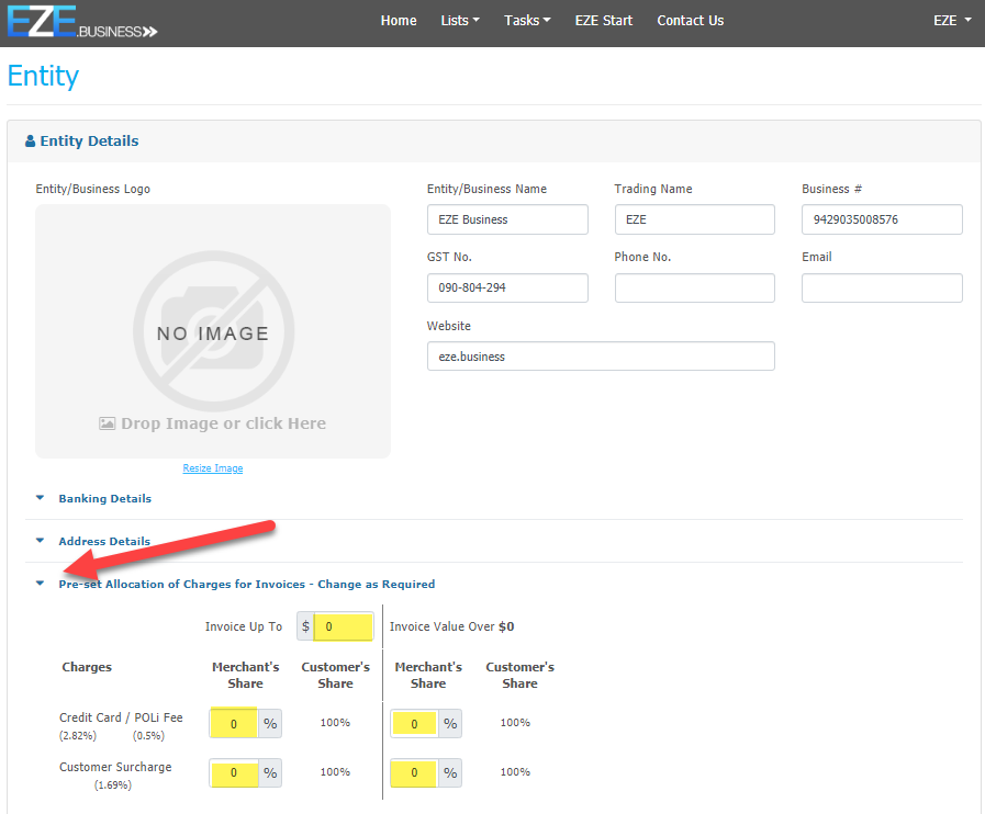 The default allocations should have been set up under the Entity Details section at registration time if fully completed. If the default settings do not appear, look for the down arrow at the top of the Home Page.