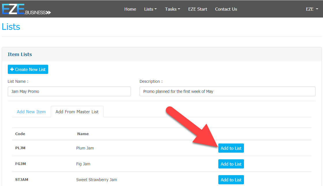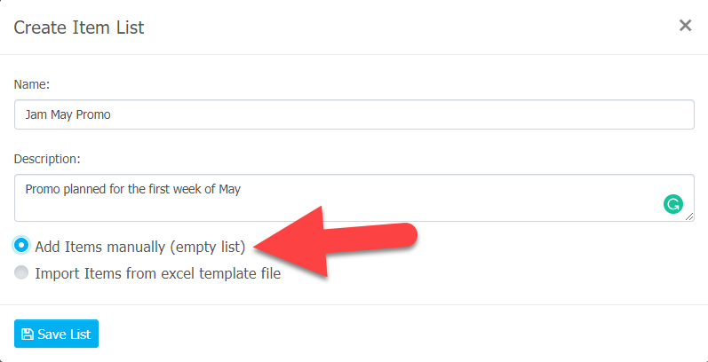 3. To import the completed List of Items from the spreadsheet, press the CHOOSE FILE button and locate your completed spreadsheet.