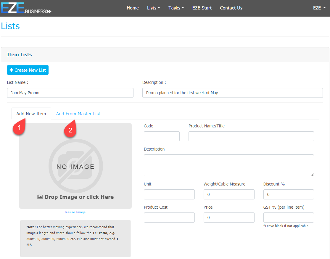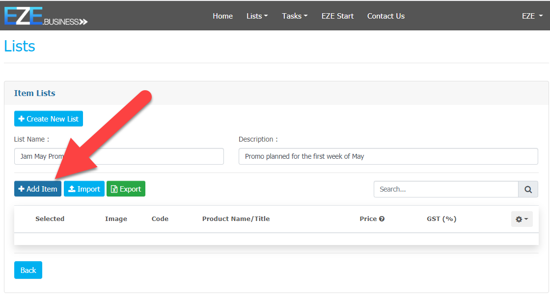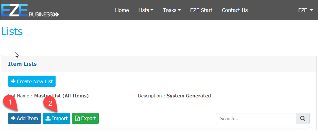 To ADD ITEMS in Bulk, use the IMPORT button and this screen will open.