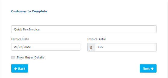 Allows the creation of a quick B2C (Business to Customer) cash sale type transaction when a customer walks through the door or when out on the job. This option is ideal if you don't have credit card or POLi pay options available for your customers.